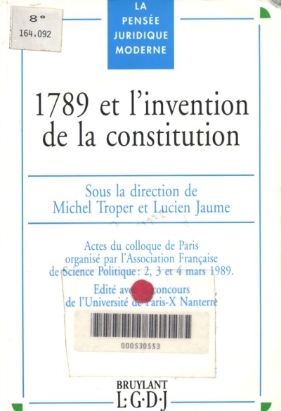 - Édition par Lucien Jaume et Michel Tropper, 1789 et l’invention de la Constitution, Bruxelles, Paris, Bruylant, LGDJ, Coll. « La pensée juridique moderne », 1994, 302 p.